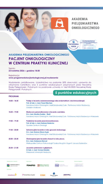 Serdecznie zapraszamy do bezpłatnego udziału w webinarium: „PACJENT ONKOLOGICZNY W CENTRUM PRAKTYKI KLINICZNEJ”